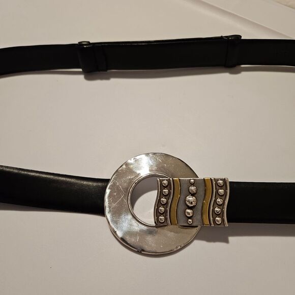 Chico's Black Leather Belt Sz S-XL 41" Adjustalbe