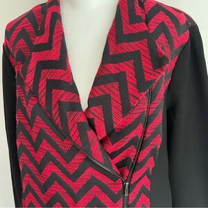 Chico’s Black & Red Chevron Moto Style Jacket Women’s Size Large (Chico’s 2)
