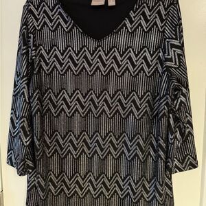 Chico's Black and Silver Chevron Blouse