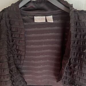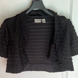 Chicos Black Sheer Striped Bolero Cropped Cardigan