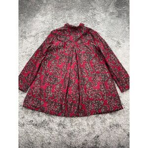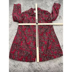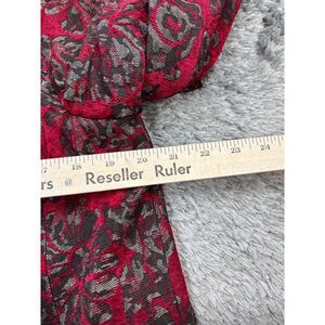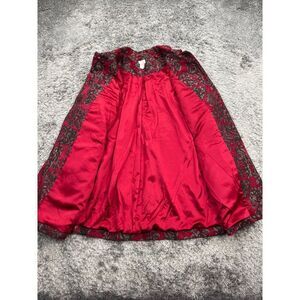 Chicos Blazer Womans 8/10 Red Floral Rayon Brocade Long Jacket Jacquard Coat