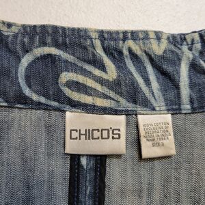Chico's Blue Jean Denim Jacket with Multicolor Trim Bleached Floral Pattern
