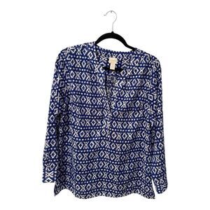 Chico's Blue and White 3/4 Sleeve Buttoned Blouse