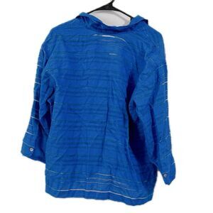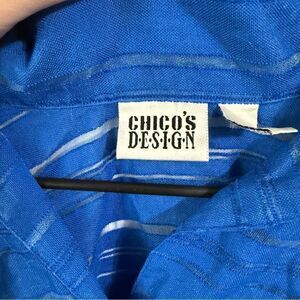 Stylish blue blouse by Chico's. Features a button-up front and relaxed fit. Perfect for casual wear.