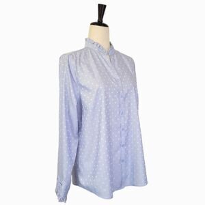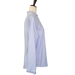 Chico's Blue Dot Ruffle Detail No Iron Long Sleeve Button Down Shirt Size 8/10