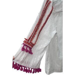 Chico’s White Embroidered Aztec Bohemian Blouse. Size 2 (Medium). Measures 16” P2P & is 25” long from shoulder to hem. This blouse is in excellent preowned condition with minimal wear. No stains or flaws