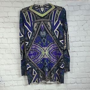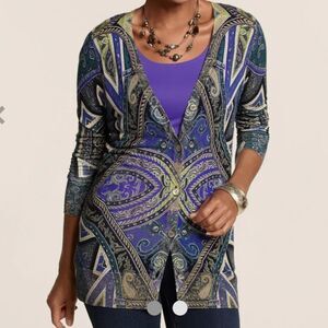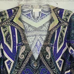 Chico's Bold Mosaic Peyton Cardigan Iridescent Shimmer Button Front Long Sweater