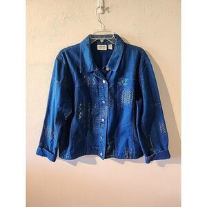 Chico's Design Royal Blue Sequin Button Up Jean Jacket Size 3 Large Aztec Geo