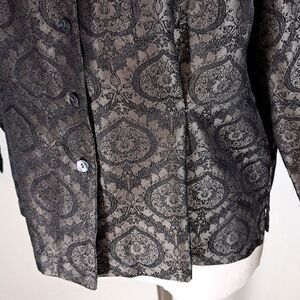 Chico’s Design Vintage Women’s Jacket Brown Damask Print Pocket Size 2 = M 10/12
