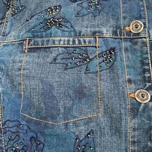 Chico’s Design Embellished Denim Jacket Size 1 (M)