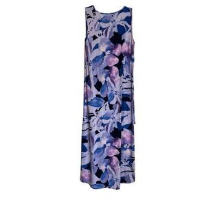 Chico's Dress Womens Size 0 Small Purple Watercolor Floral Sleeveless Tunic Hem Midi