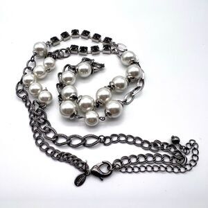 Chico’s Faux Pearl Rhinestone Necklace Gunmetal Two tone