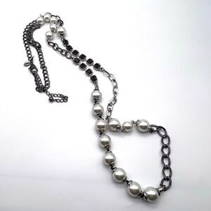 Chico’s Faux Pearl Rhinestone Necklace Gunmetal Two tone long