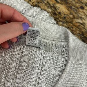 Chico’s Gray Silver Metallic Cable Knit V-neck Pullover Sweater Size XL