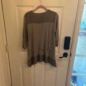 Elegant tunic with diagonal stripes. Soft fabric and relaxed fit. Ideal for versatile styling.