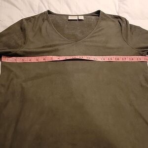 Discover the relaxed elegance of Chico's green blouse, featuring 3/4 bell sleeves . faux suede. washable. sz 1 chicos which is a small. no flaws perfect condition