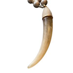 NWOT Chico's Horn Pendant Necklace Beyond fierce. A strand of wooden beads culminates in a gorgeous gold-tone talon, making this go-to necklace a true force of nature. Individual style. Clean, modern lines. The Exclusive Black Label by Chico's™ collection. Wood, metal, synthetic and glass. Imported.