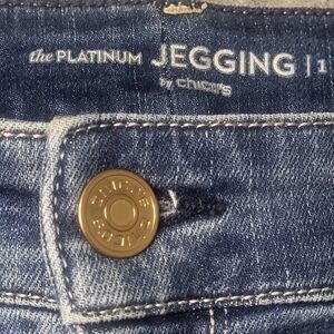Chico's Jeans Women's Size 8 Platinum Gold Leaf Jeggings Medium Wash.