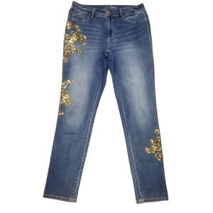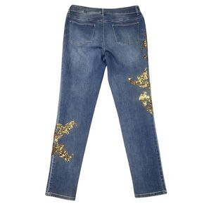 Chico's Jeans Women's Size 8 Platinum Gold Leaf Jeggings Medium Wash