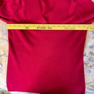 What I Love About It: V-neck styling and long sleeve. Tomato red. Light Weight Sweater Top. Work from Home Power Top!