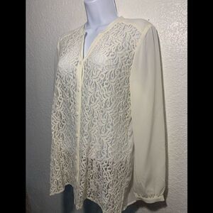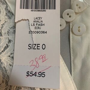 This top is New with tags, sheer button down top with lace front. Size 0 vanity sizing