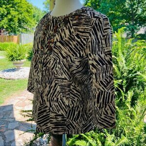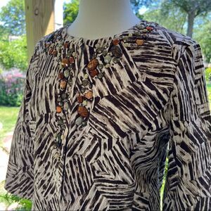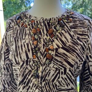 Chicos Light Weight Brown & White Beaded/Studded Jacket Chico’s size 1