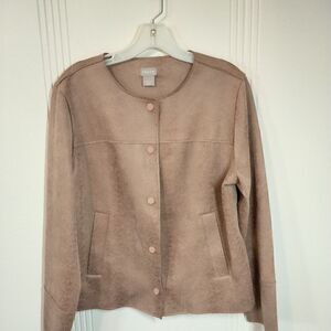 Size 1 ( medium / 8 ) Beautiful light pink color. Snap up in the front. Excellent condition. See photos for measurements.