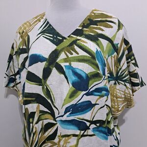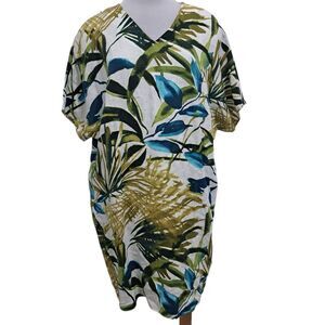 Chico's Linen Palm Print Tunic Wedge Short Dress Multi- Color Size 2 Large NWT