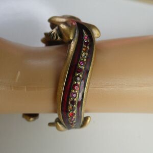 Chico's Lizard Enamel Rhinestone Clamper Cuff Bracelet Sparkly Hinged Figural