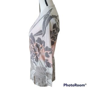 Long sleeved, long line cardigan with one button closure and side slits. Linen and cotton blend. Very lightweight. In excellent pre-owned condition. Size 0.