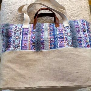 Chico's- Mosaic Print Tote Canvas Embroidered