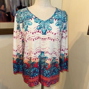 Chico’s Multicolor Vibrant V-Neck Cotton Top Size 2- Large