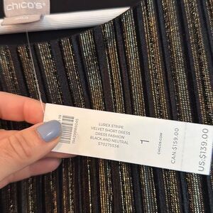 Chicos NWT velvet lurex metallic stripe dress size 1/M