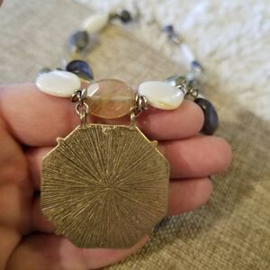 Chico's Necklace Black Stone Neutrals Gold Fixing