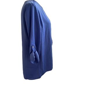 Soft, lightweight and silky polyester. Roll tab sleeves. New condition- no flaws.