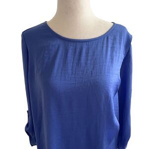 Chico’s New with Tag Tulip Front Blue Long Sleeve Top Blouse