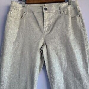 Chico's Platinum Pants Metallic Silver Crop Jeans NWT Size 0 US Sz 4