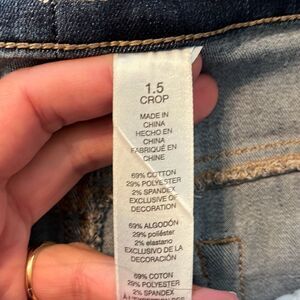 These jeans are made by Chico’s. They are a stretch denim crop with slits at the ankles. Chico’s size 1.5 and in great pre owned condition. Smoke and pet free home.