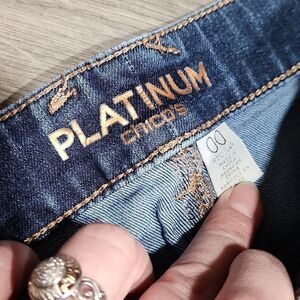 Chicos Platinum Straight Leg Jeans, excellent used condition and no flaws. Quality and soft, waist flat q4", rise 9" and inseam is 27".