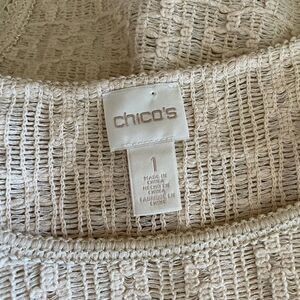 Beautiful cream Chico’s sweater in like new condition! Zoom in to see the details! Truest unique and beautiful! Chico’s size 1, regular size 8 or medium. 40” bust, 22” length
