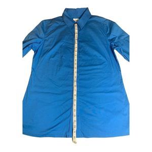 Listing Details: Blue Button up collard blouse, can be worn short or long, side bottom slit.