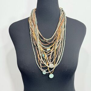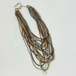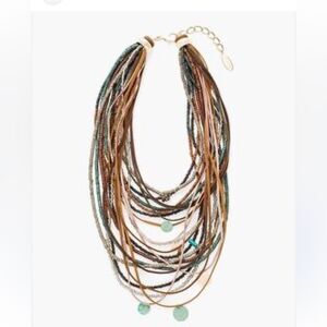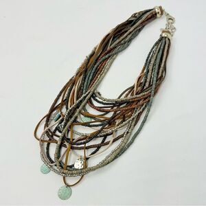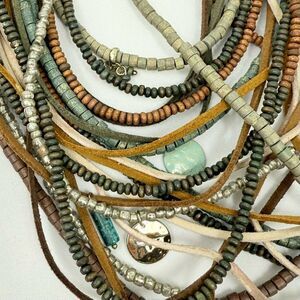 Chico's SERENA Brown Green Wood Bead Leather Multi Strand Boho Charm Necklace