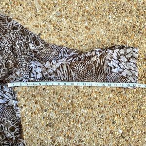 Chico’s Silk sheer brown and tan cheetah leopard animal print blouse with an expandable elastic waist