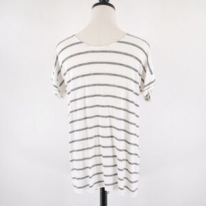 Chico's Size 0 White Gray Striped Shirt Dress Dress Rayon Blend Short Sleeve