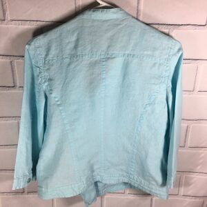 Chico's Size 0 = to Small Turquoise Blue Linen Jacket 3/4 Sleeves Zip-Up