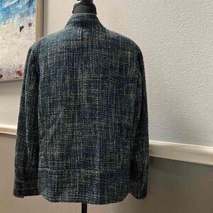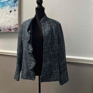 Chico's Size 2 Mystic Tweed Rachelle Ruffle Jacket Blazer Blue Women’s