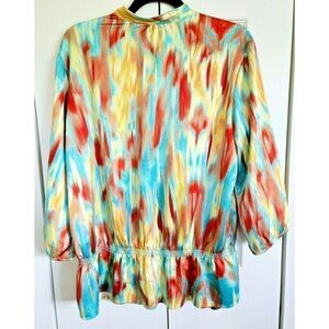 Chico's Size 2 Striped 3/4 Sleeve Colorful Shirt Women's L Button Gathered Waist