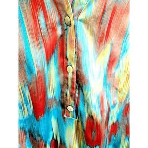 Chicos Size 2 Striped 3/4 Sleeve Colorful Shirt Women's L Button Gathered Waist.