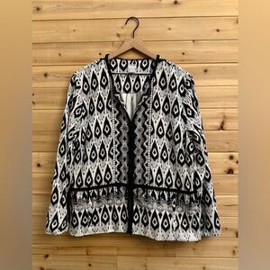 Chico’s Size 3 Or 16/18 Contrast Ikat Print Lounge Cotton Lightweight Jacket
