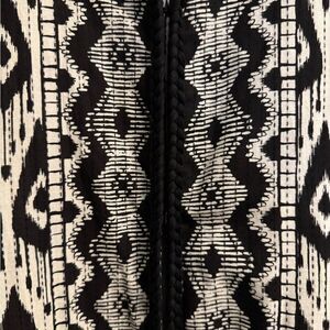 Black & White Ikat Print Lightweight Lounge Blazer Jacket With Beading Detail